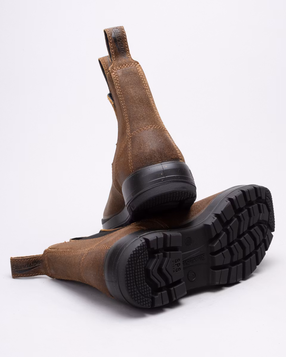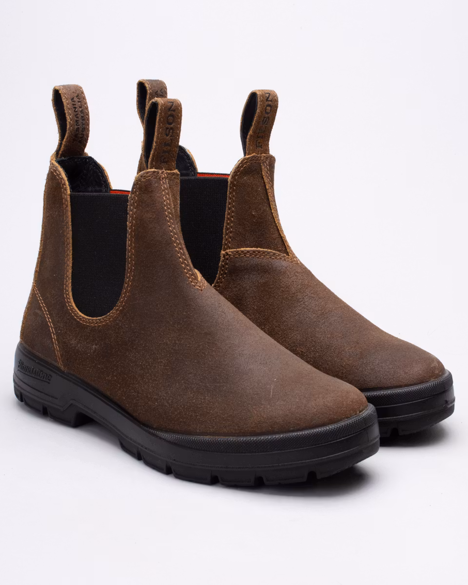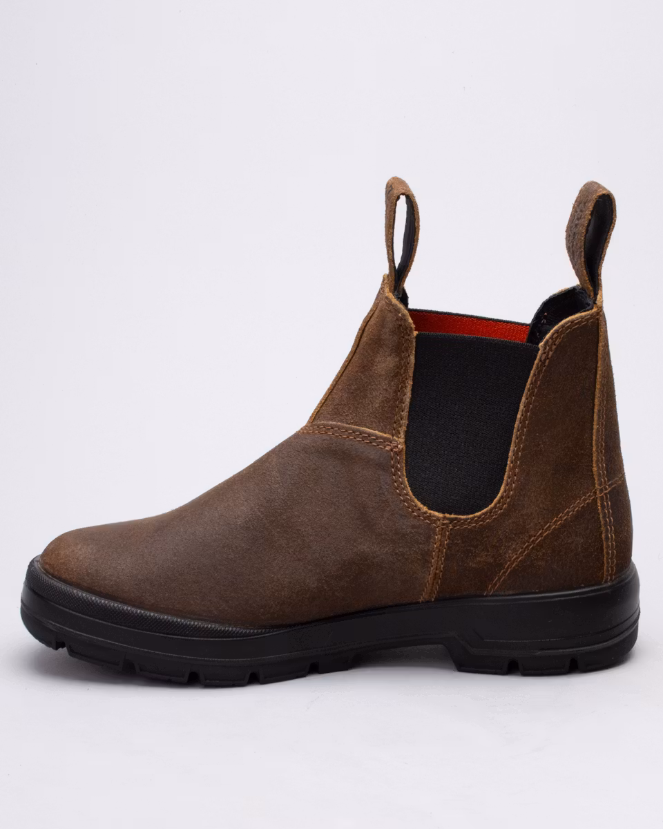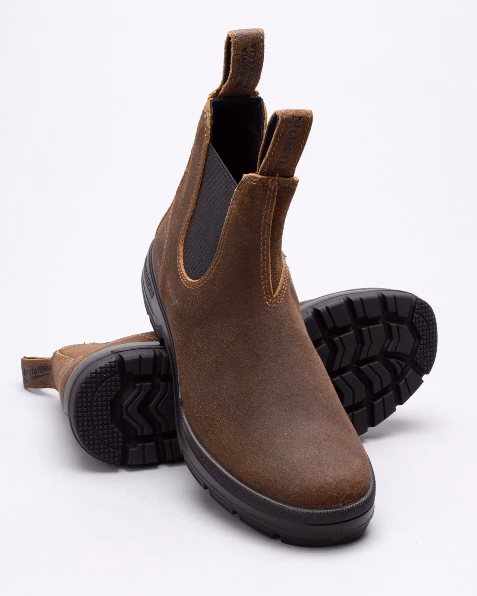 Upper in water-resistant waxed suede. Leather-lined shaft. Blundstone's "Comfort Arch," removable insole for maximum comfort. Newly developed Avalon® Gecko, rugged, shock-absorbing rubber outsole. Leather pull-loops featuring Blundstone and Filson logos.