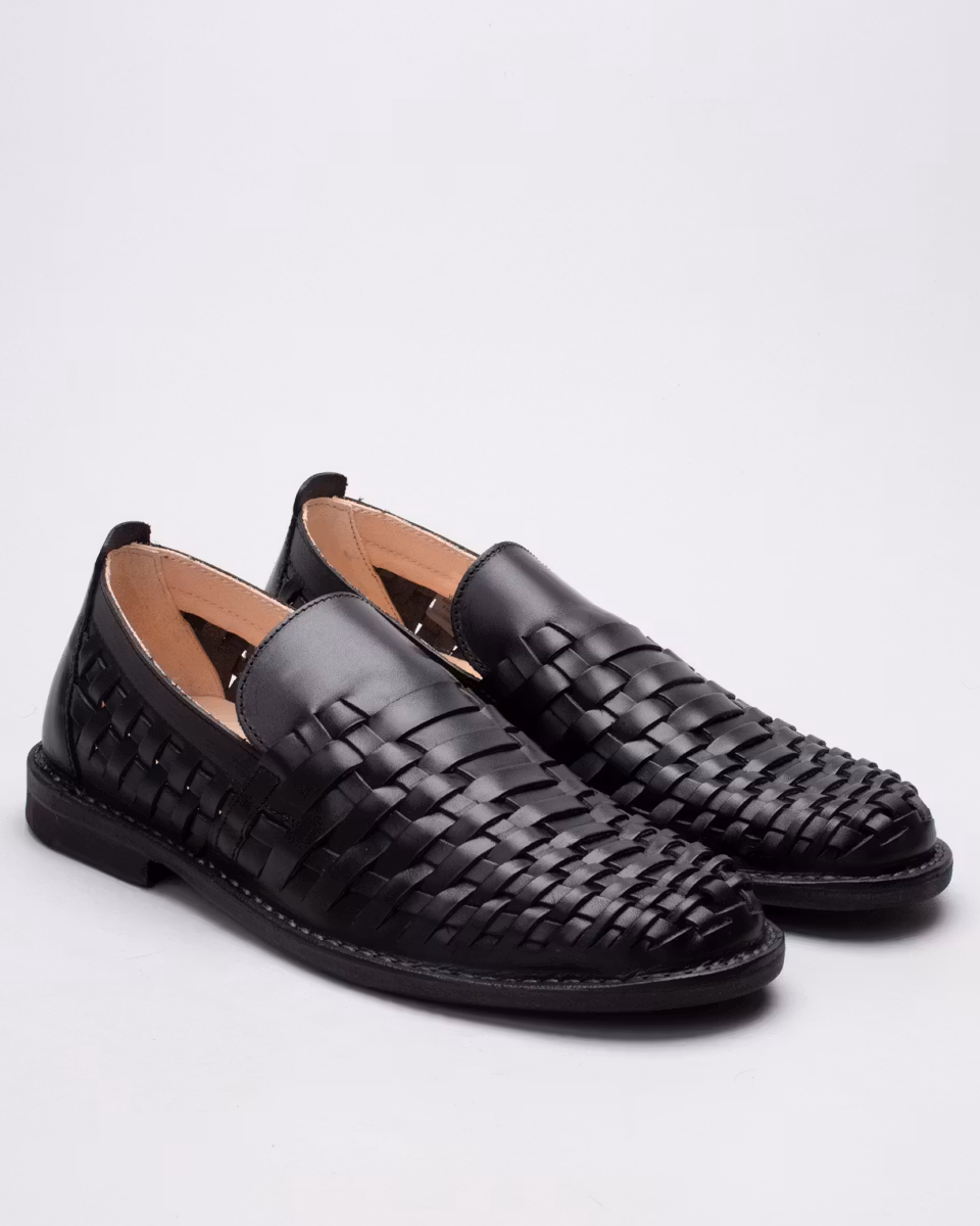 Woven loafer from Italian shoemaker Astorflex. Crafted from black calf leather with a breathable unlined construction. Features a removable leather-lined insole for added comfort. Finished with a hybrid leather and rubber outsole and durable stitch-down construction. Made in Italy.