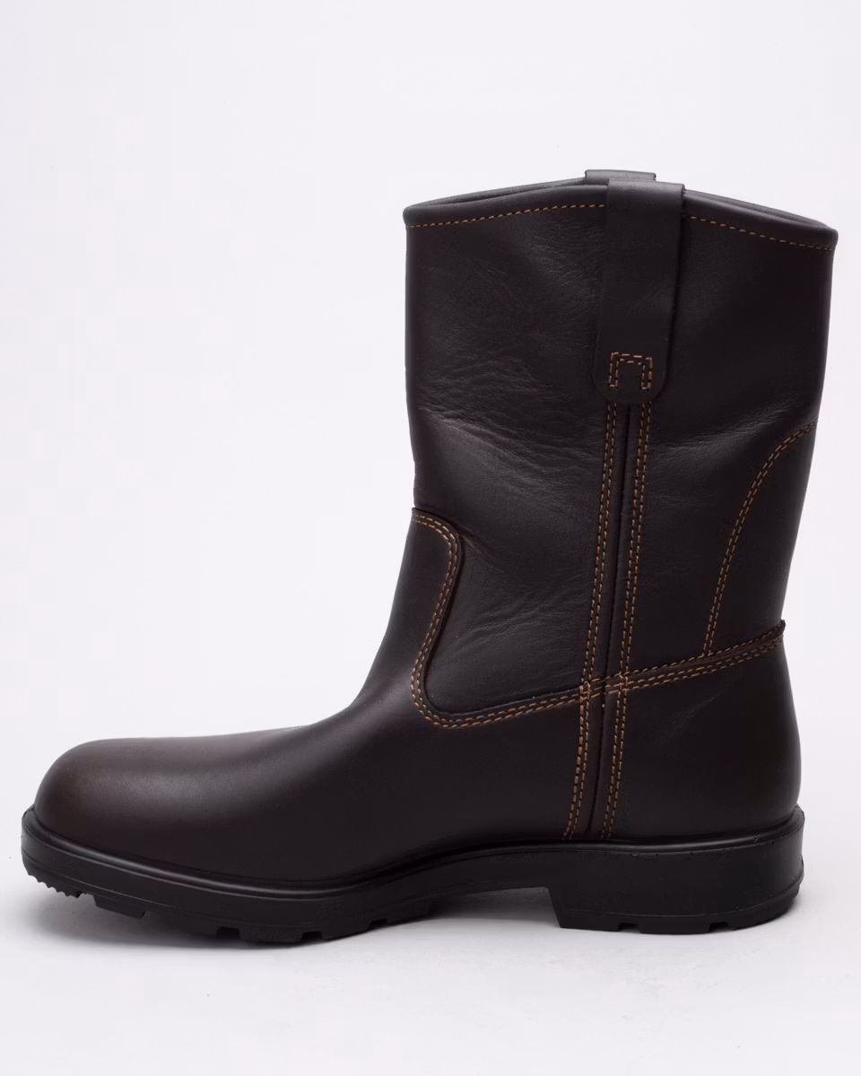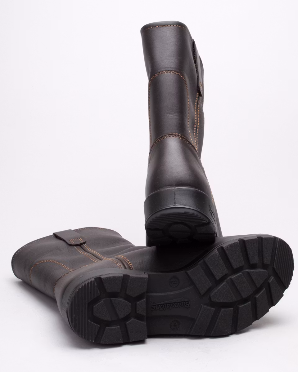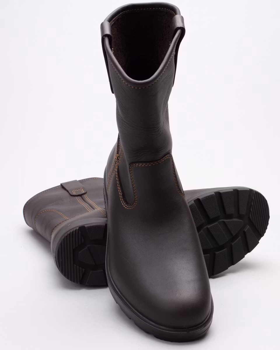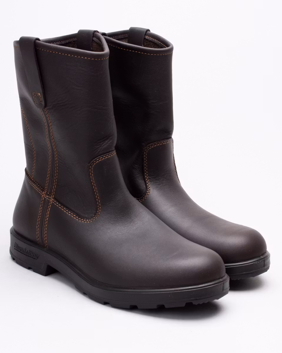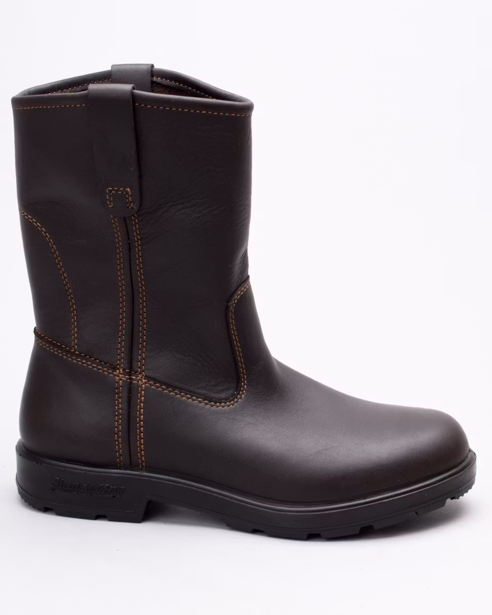 Rigger Boot från Blundstone. Ovandel i mörkbrunt fullnarvsläder. Ofodrad skaft, textilfodrad fot. Tvättbar, stötdämpande innersula med XRD®-teknologi i hälen för extra komfort. Yttersula i gummi.