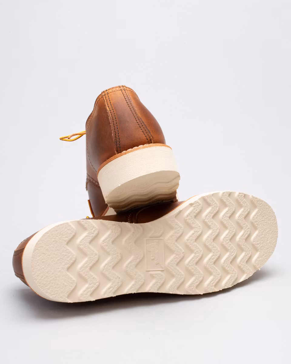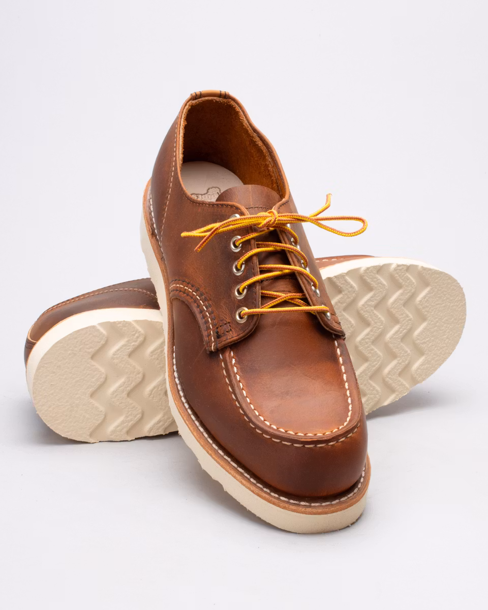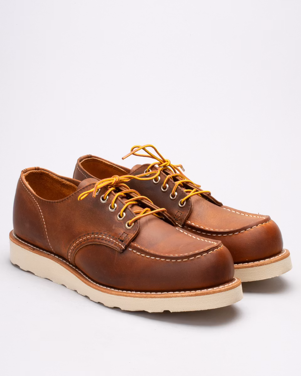 Red Wing Shoes Moc Oxford debuterade redan 1954 och kompletterade "storebröderna" 877 och 875. Ovandel i Red Wings Copper Rough & Tough-läder från SB Foot Tanning Company, MN. Fullt skinnfodrad. Innnersula i läder. Red Wing Shoes klassiska vita wedge-sula i gummi. Randsydd konstruktion. Tillverkad i USA. Normalbred läst, D.