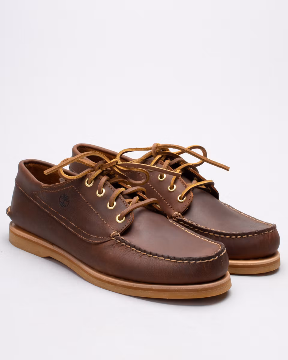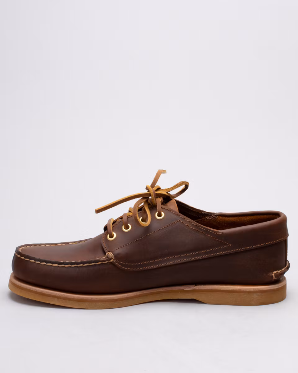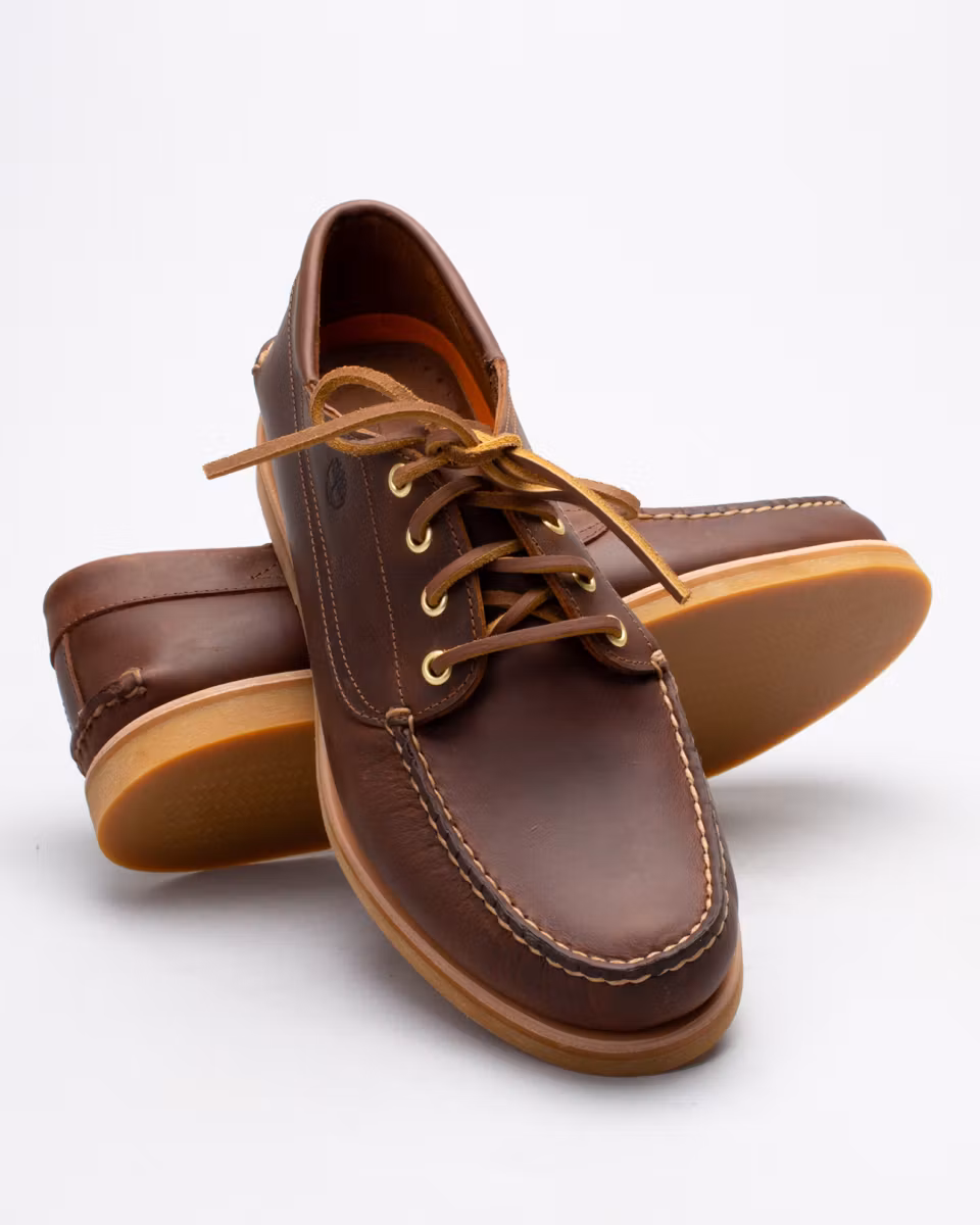 Timberlands klassiska båtsko i premium utförande. Ovandel i mellanbrunt, oljat fullnarvsläder. Handsydd konstruktion med 360° snörning i råläder. Ofodrad. 3/4-lång, läderklädd innersula. Bindsula i läder. Yttersula i gummi från Vibram®. Tillverkad på Dominikanska Republiken.