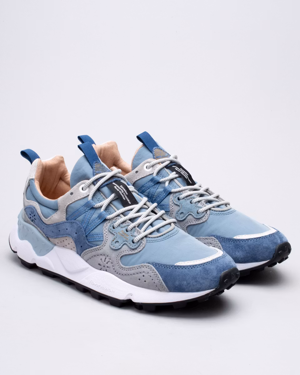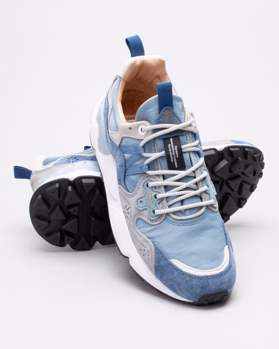 Sportig och outdoor-inspirerad, Yamano-sneakern från japanska Flower Mountain kombinerar aktiva detaljer med en stilig estetik: perfekt även för staden. Den tekniska ovandelen i tyg har mockadetaljer med den karakteristiska överlappande konstruktionen, trekkingsnören och blomformade detaljer. Grovmönstrad yttersula i lättviktsgummi. Den antibakteriella innersulan i naturlig kork skyddar foten och ger komfort hela dagen.