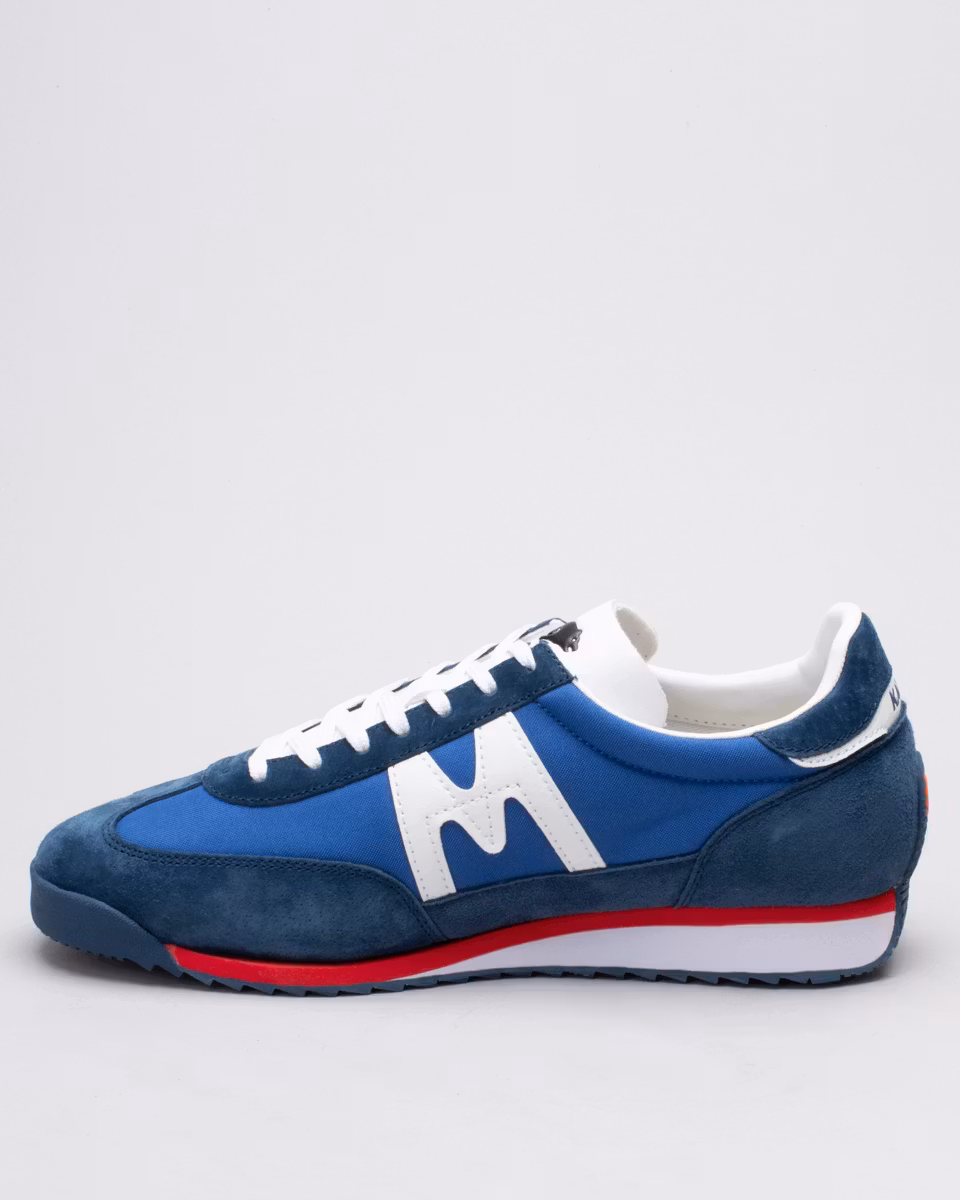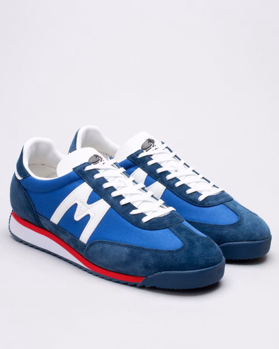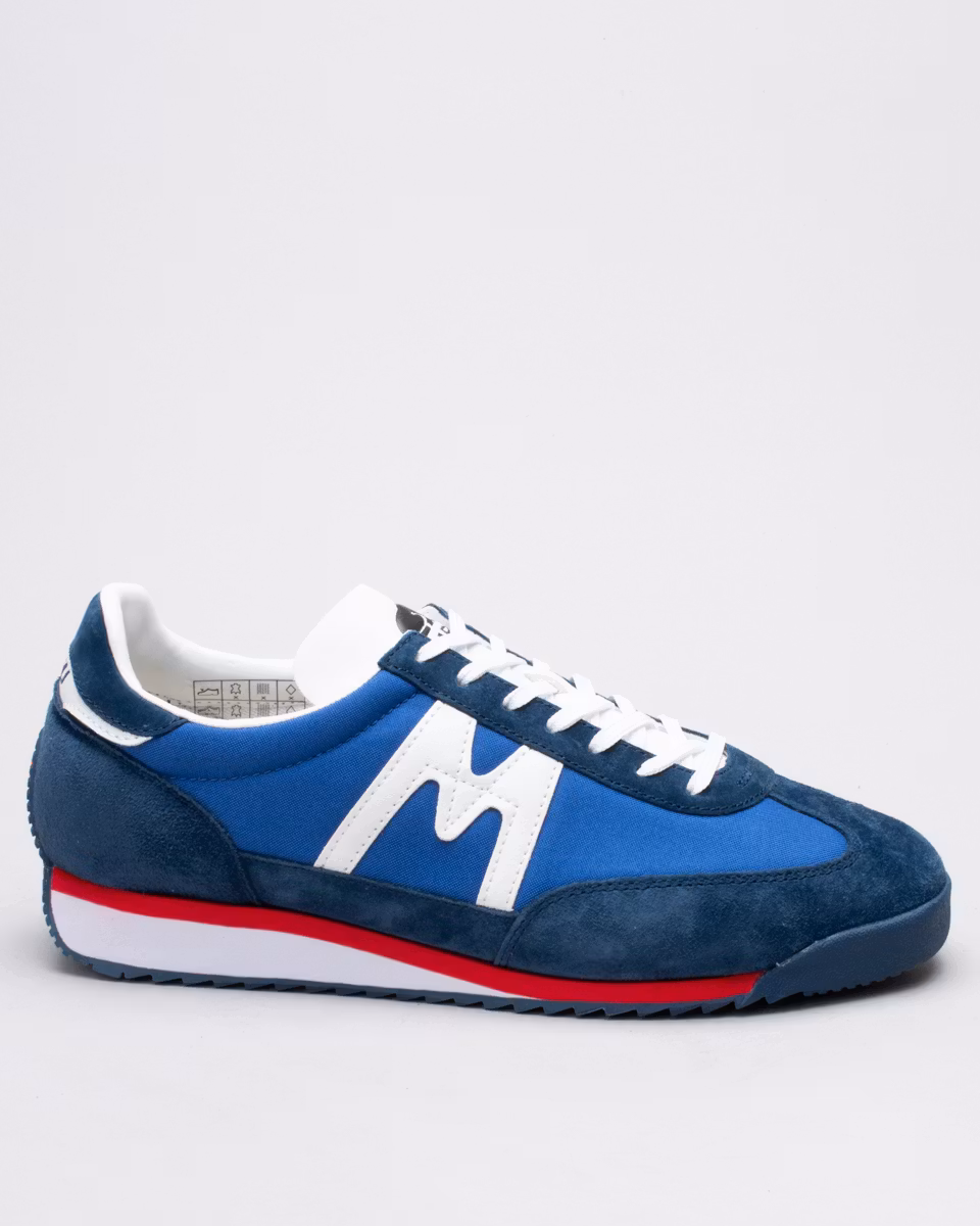 Först lanserad 1977 och en riktig storsäljare under 10 år. Mestari är en av Karhus riktiga klassiker med över en miljon par sålda genom åren. Ovandel i mocka och nylon. Uppbyggd innersula. Yttersula i stötdämpande EVA-gummi. Små i storlekarna.