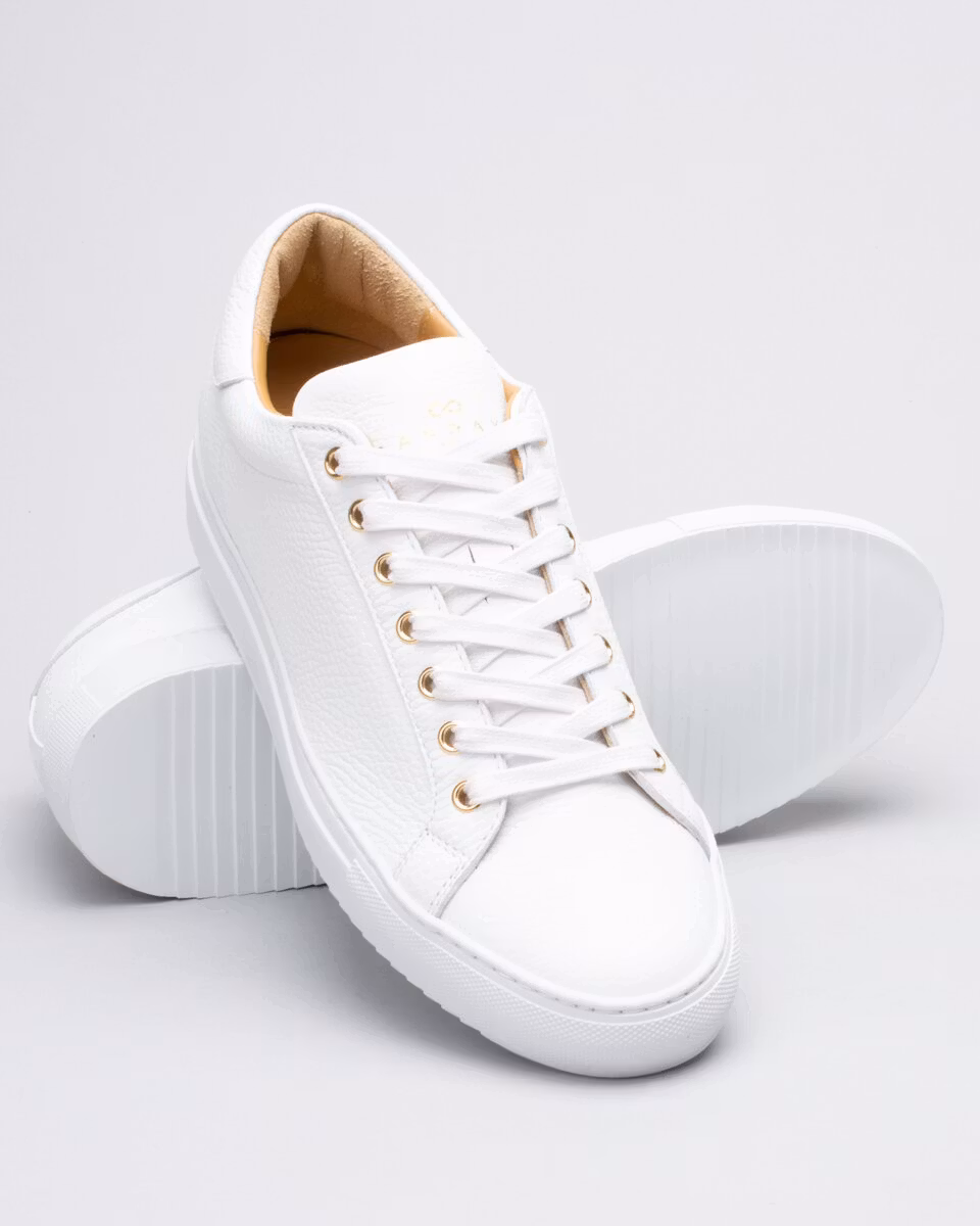 Kvalitetssneaker från svenska Sandays. Ovandel i vitt läder. Skinnklädd, löstagbar, innersula. Fullt skinnfodrad. Yttersula i gummi från Margom. Tillverkad i Italien.